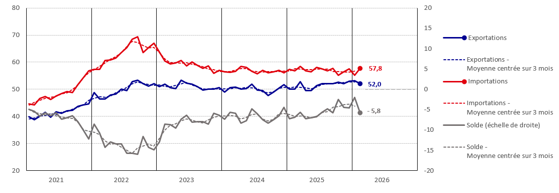 | Importations | 57,8 | 55,2 | 57,5 | 56,5 | 55,1 | 57,8 | 684,3 | 685,5 | 680,8 |